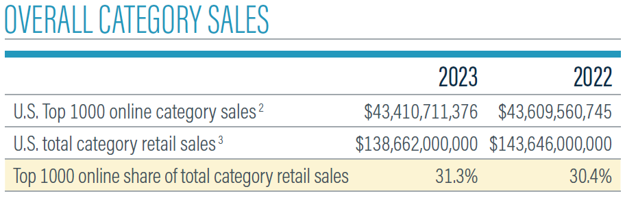 But if there’s a bright spot for the Top 1000 retailers in the Housewares & Home Furnishings category, it’s that they increased their share of the total retail sales in the category, to 31.3% in 2023 from 30.4% the year before.