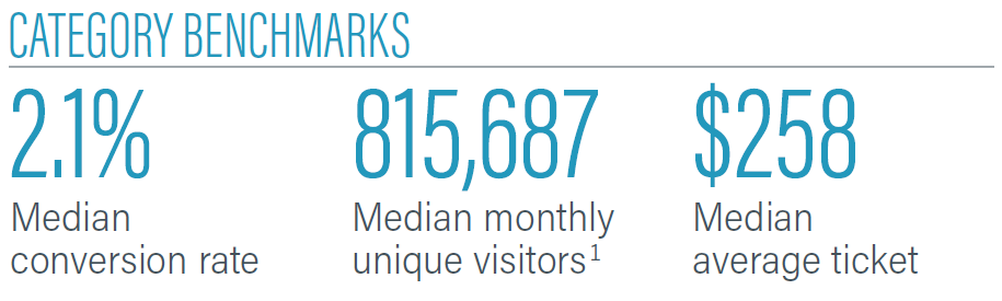Source: Digital Commerce 360 1. Digital Commerce 360 analysis of SimilarWeb traffic data. 2. Includes only U.S. sales from the sites of U.S.-owned retailers for consistency with the U.S. Department of Commerce’s methodology. 3. Digital Commerce 360 analysis of U.S. Department of Commerce retail data. 4. Medians won’t sum to 100%